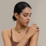 Parce que le plaqué or 14K offre un équilibre idéal entre esthétique, durabilité et accessibilité. Cela évite l’extraction intensive de métaux précieux, souvent destructrice pour les écosystèmes.